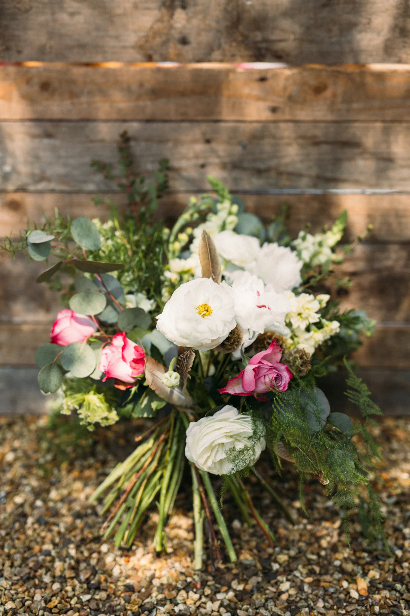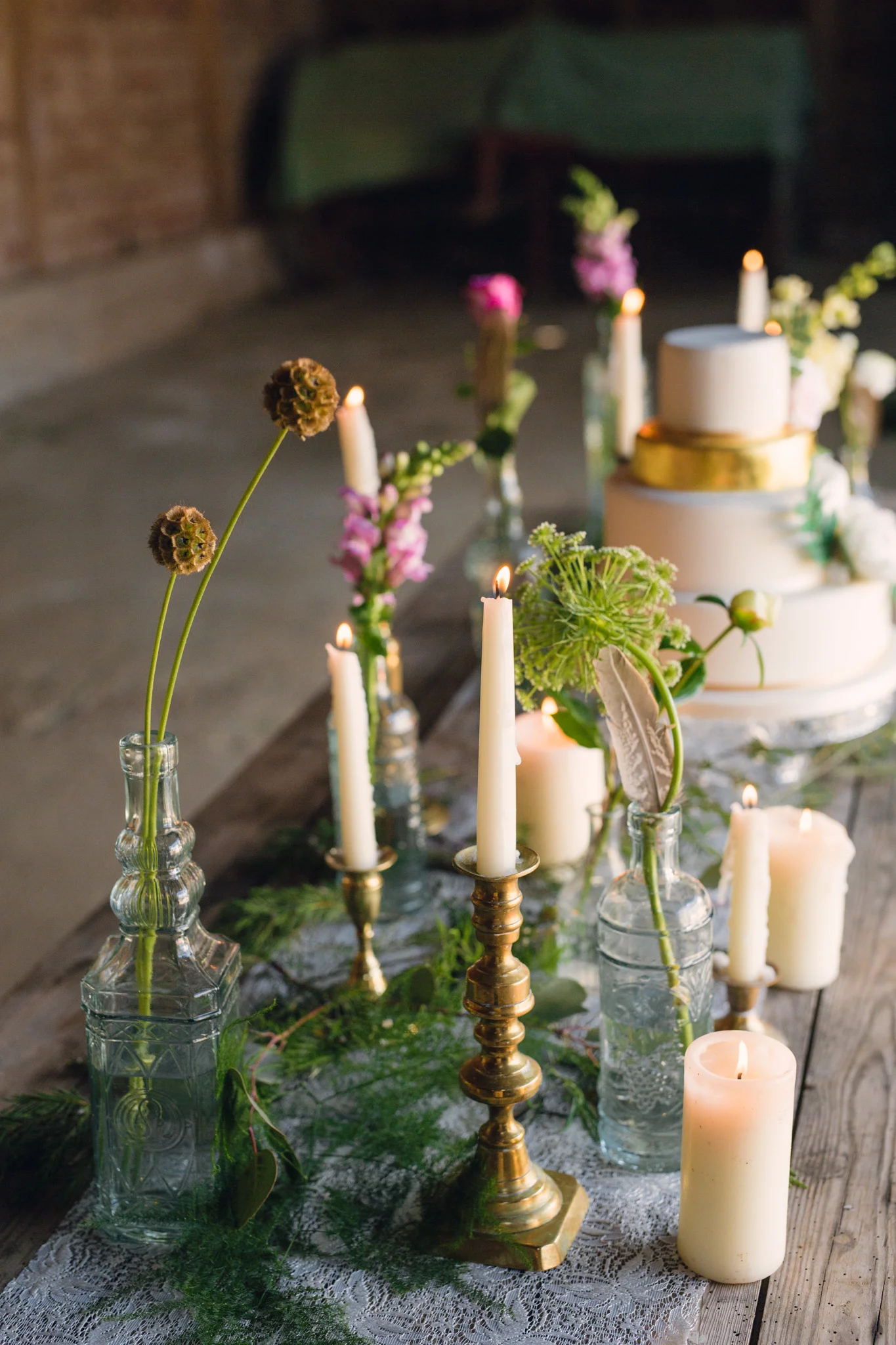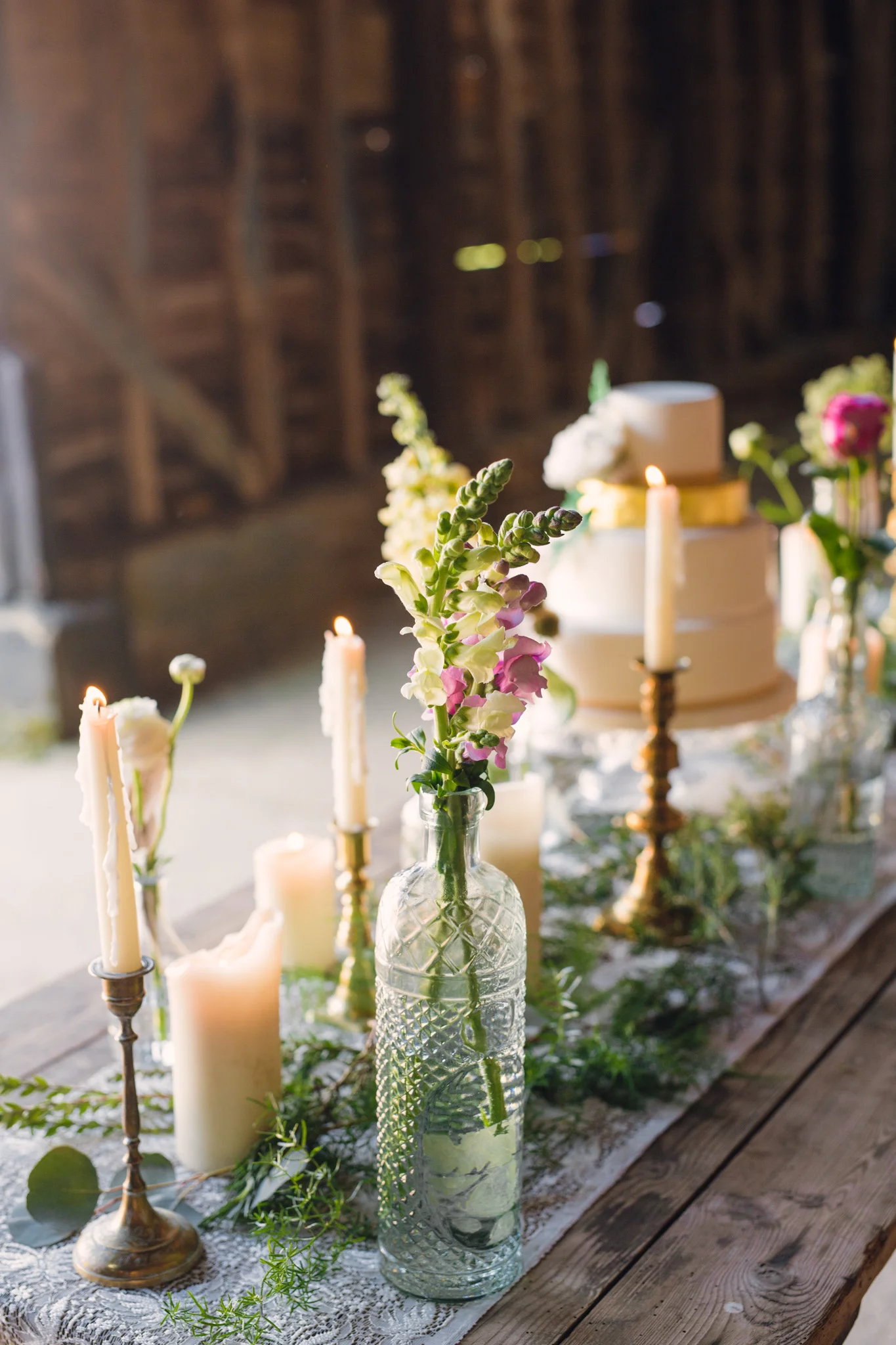 On the day, wedding stylist Gemma at The White Emporium set up 5 beautiful scenes for us to shoot against, with a variety of wonderful rustic props and stunning, relaxed floral arrangements filled with whites, pinks and lots of greenery from Sarah at The Flower Hut. Our cake was provided by Helen at Sweetness and Delight, with beautifully detailed handmade icing flowers and a gold leaf tier. It was so exciting watching the shoot unfold as all the vendors arrived and set up. Our collective vision for the shoot was coming together and everything was beautifully cohesive in style.