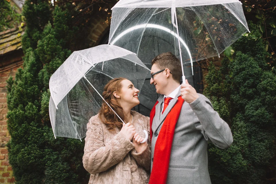 They held their ceremony in the Manor Lounge and exchanged handwritten vows, and I won't deny that I was tearing up behind my camera! After the ceremony we took portraits in front of the beautiful fireplace, and Elizabeth and Lewis were brave enough to heading for some cute rainy portraits complete with umbrellas and overcoats!