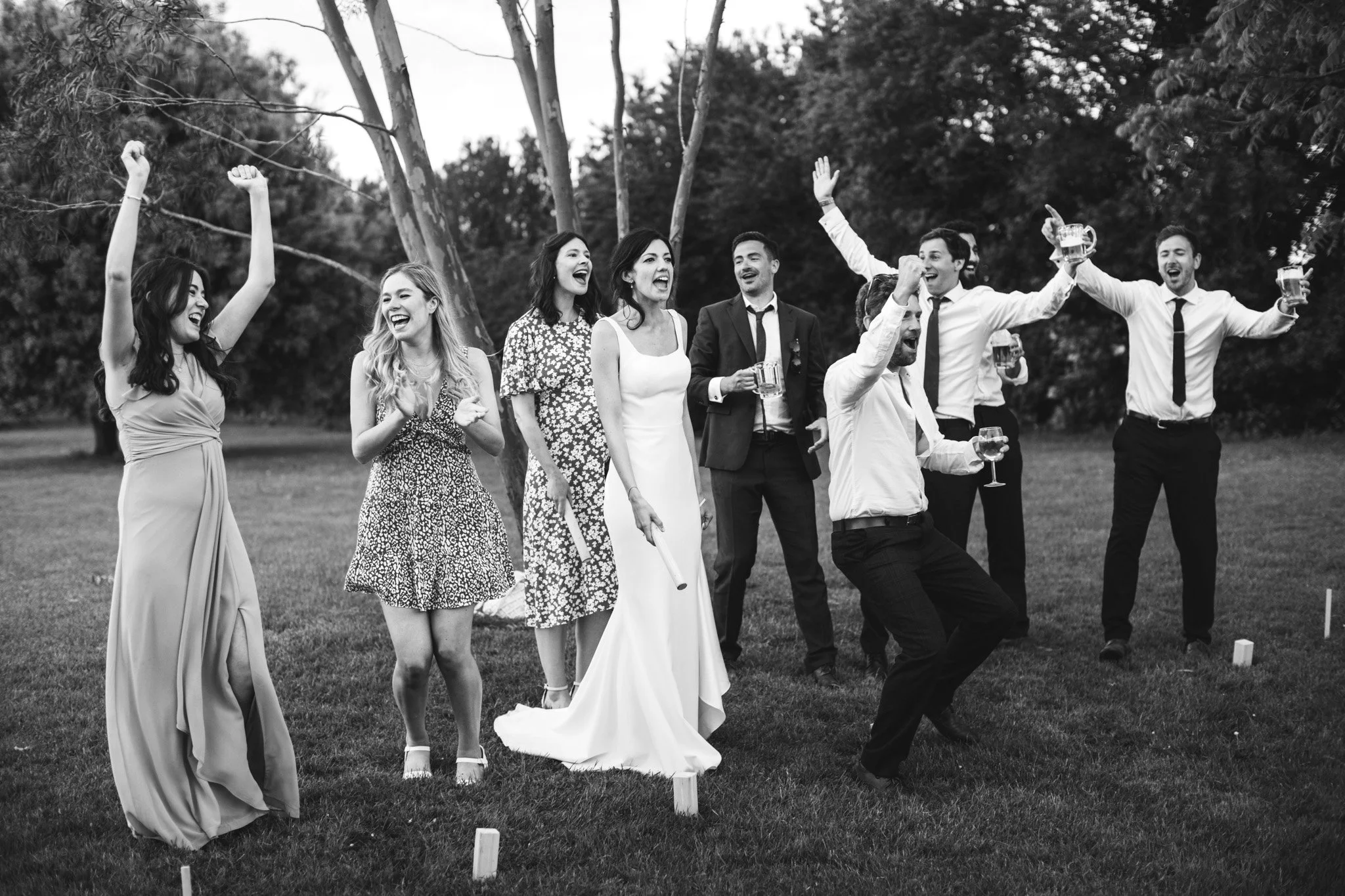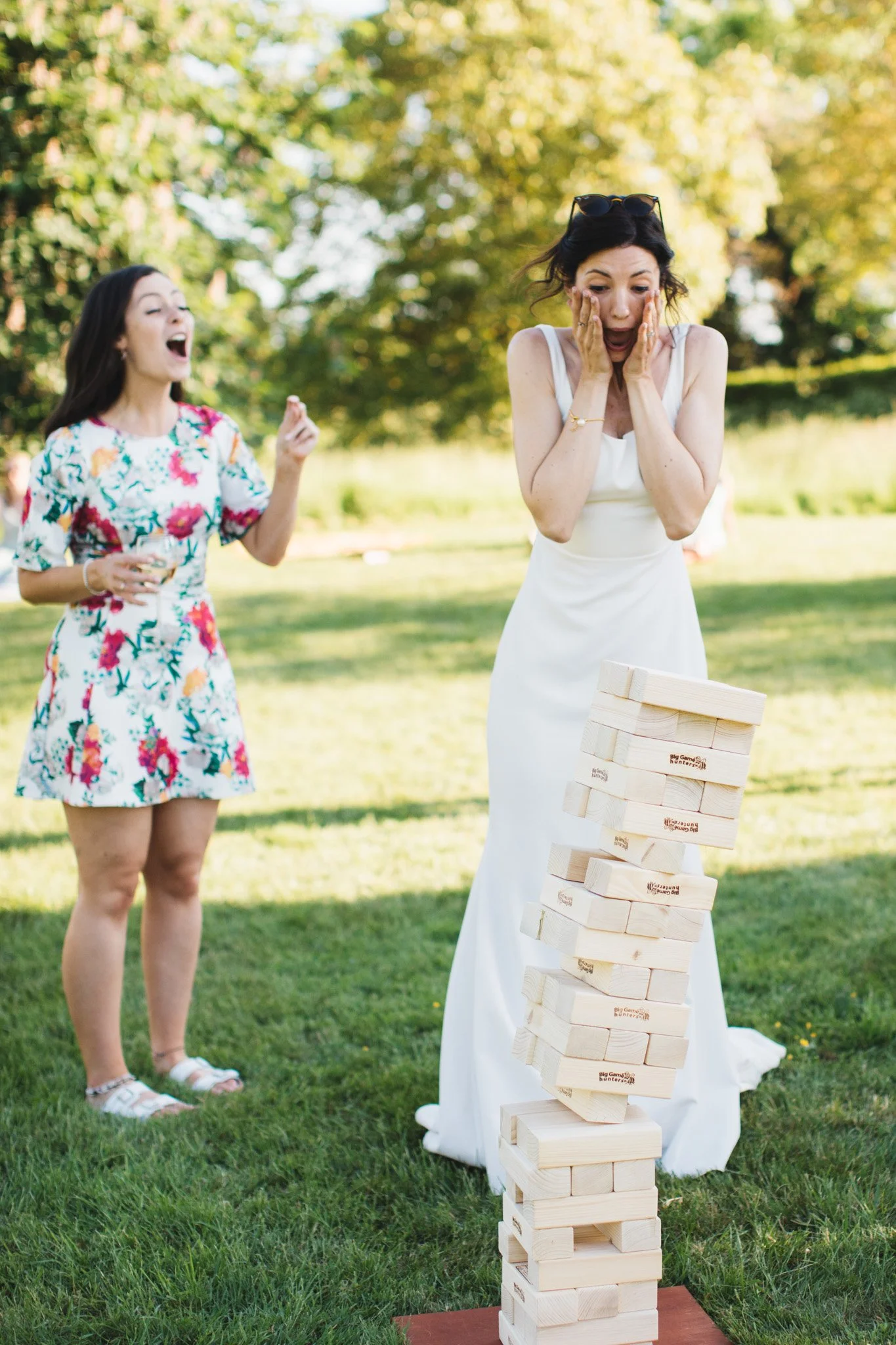 During their drinks reception, Felicity and Chris stepped into the barn with a few close family members to make it legal with short but sweet civil ceremony. Speeches before dinner made for a lovely transition into the next part of the day and I loved capturing everyone’s reactions as their nearest and dearest spoke. Everyone enjoyed barbecue food for the wedding breakfast and after dinner everyone sprawled out into the gardens to make the most of the garden games which quickly got competitive!