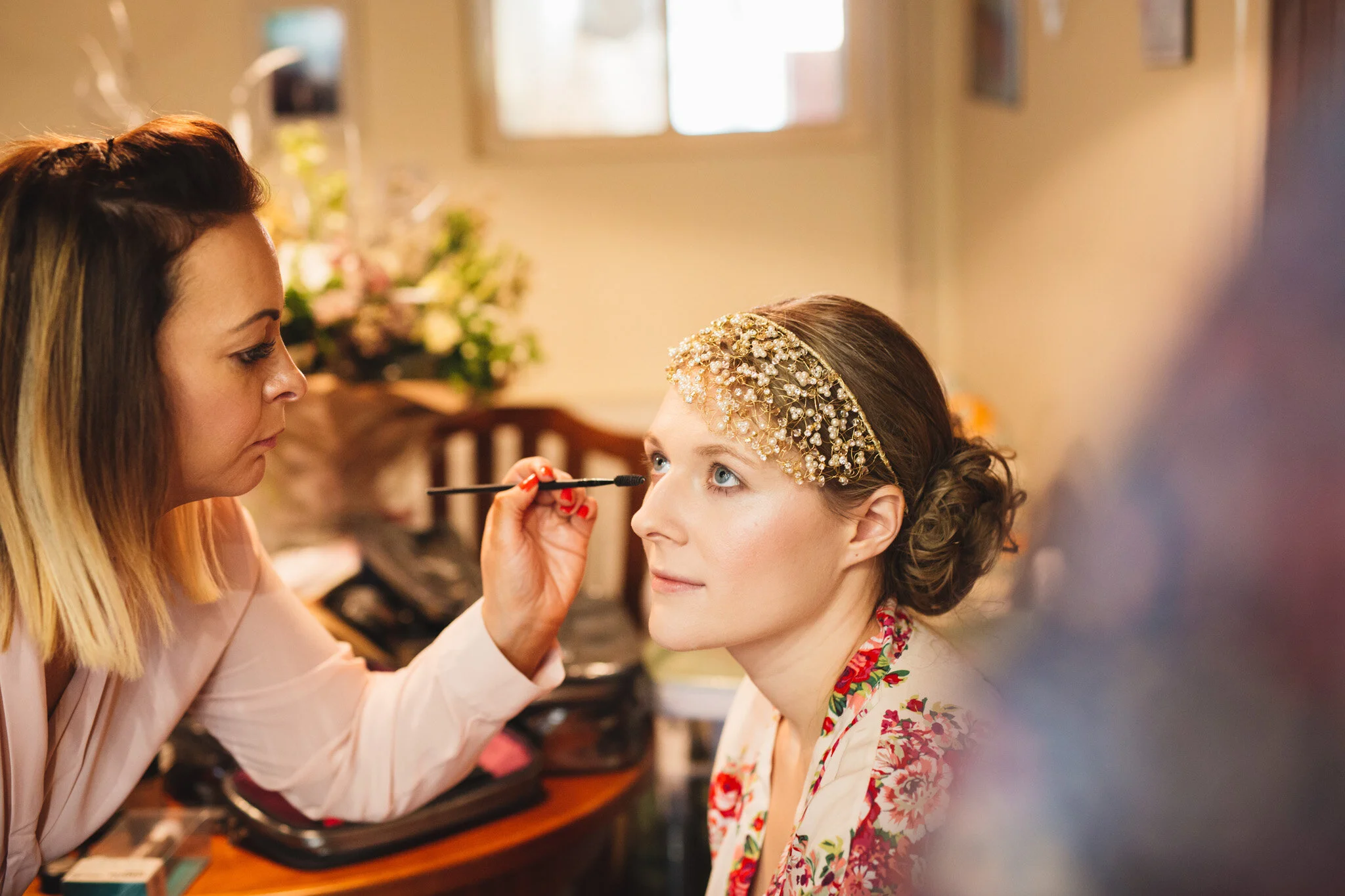 Eastington Park is an 18th century manor house in Gloucestershire, and it’s the perfect venue for a winter wedding. In the morning I met Yogi and her bridesmaids in the spacious bridal suite which was perfect for a relaxed morning as they had their hair and makeup done. The room was full of light which glittered off of Yogi’s intricately beaded dress as she got ready. Her bouquet was a mix of red and white roses, thistles and greenery which was just perfect for a winter wedding.