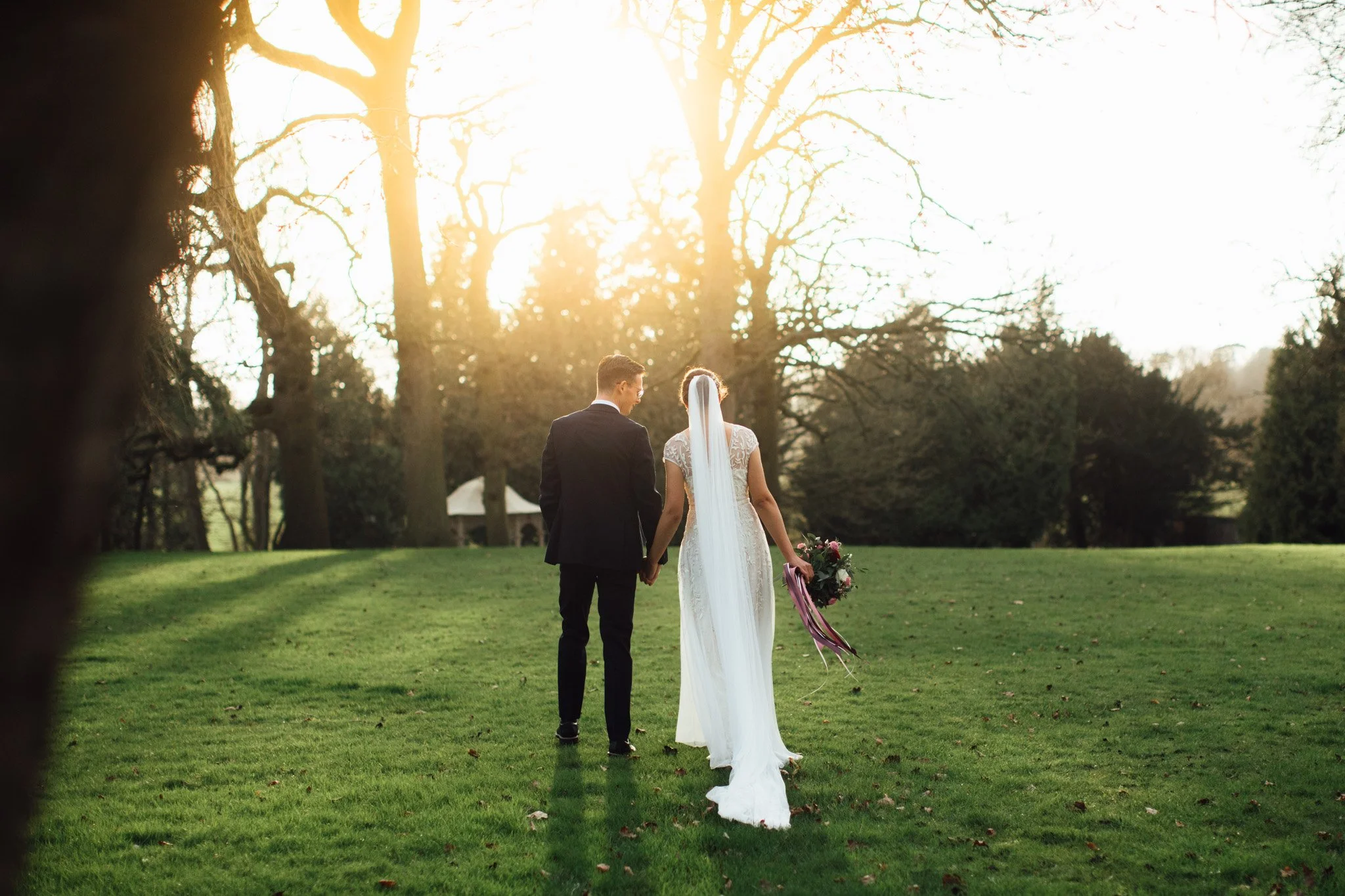 One thing I particularly love about winter weddings is the early golden hour and we were treated to a stunning sunset as their drinks reception drew to a close. I’m so glad Yogi and Simon braved the chill as we got the most beautiful shots - my favourite happening as they walked back inside, Yogi wrapped in a pashmina, Simon’s arm around her to keep her warm.